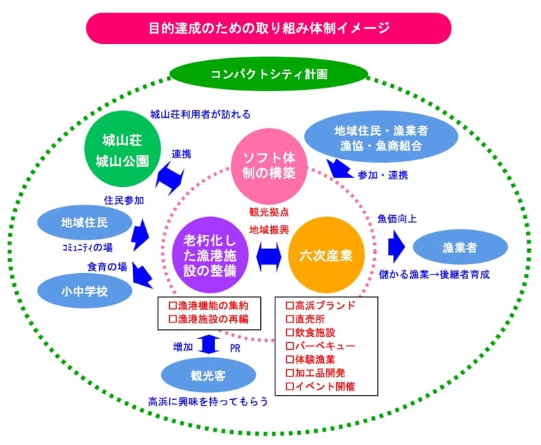 □老朽化した漁港施設の再編 □人が集まる魅力的な施設(おいしい・体験)