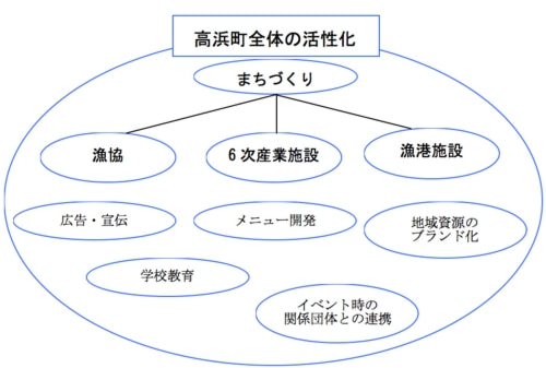 4つの部会を設け高浜漁港再整備に必要な取組み内容について関係者を中心に検討することにより今後それぞれの立場として何をするべきか共有する。