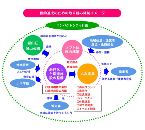 □老朽化した漁港施設の再編 □人が集まる魅力的な施設(おいしい・体験)