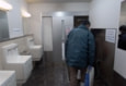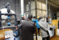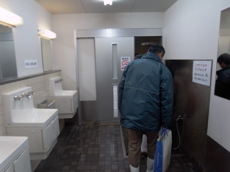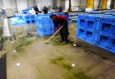 競り場で働く従業員もエアーシャワー室を通り、手や長靴を洗浄して入る。