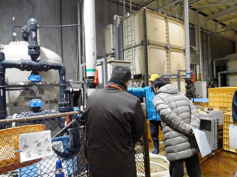 施設内で使用する水については、海水と井戸水が使用されており、特に海水については、沖合150m・水深30mのきれいな良質海水を海水殺菌ろ過装置でUV殺菌した殺菌海水を使用している。